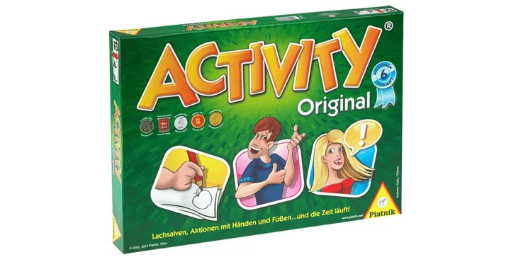 Lachsalven, Aktionen mit Händen und Füßen…und die Zeit läuft! Zusammengesetzte Hauptwörter so umschreiben, darstellen oder zeichnen, dass sie von den Mitspielern in 60 Sekunden erraten werden können – so simpel und doch genial ist das Spielprinzip von „Activity“, einem echten Original aus Österreich.
