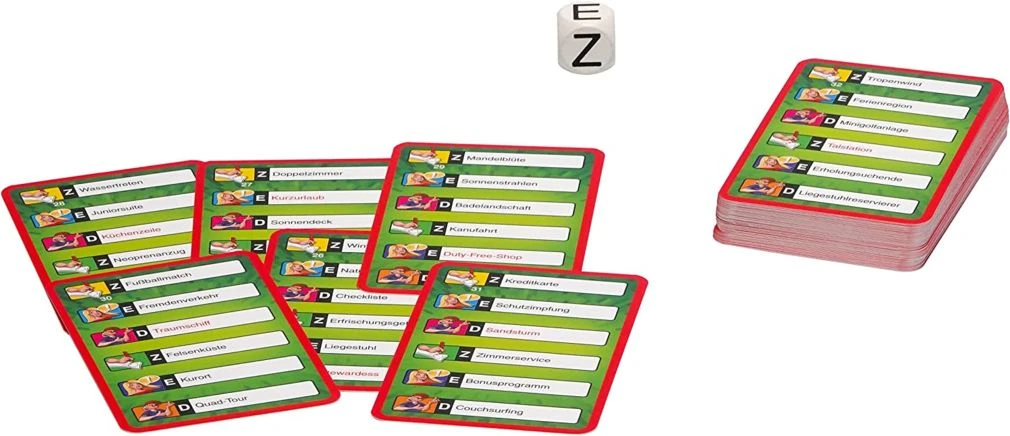 Durch das handliche Pocket-Format passt es bequem in jede Hand- oder Reisetasche. Es ist schnell erklärt und lässt sich an jedem beliebigen Ort spielen. Die Pocket-Variante enthält einen Buchstabenwürfel, der die auszuführende Darstellungsart vorgibt. Und 55 Karten mit jeweils 6 Begriffen, die es mittels Zeichnen, Pantomime oder Erklären darzustellen gilt. Anstelle einer Sanduhr wird der Timer kurzerhand am Handy gestellt.