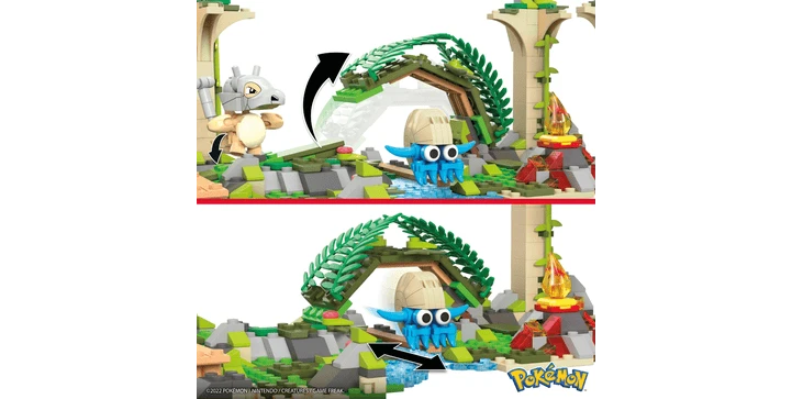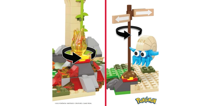 In uralten und verlassenen Ruinen erleben Tragosso, Glumanda und Amonitas aufregende Abenteuer. Die Ruinen lassen sich mit interaktiven Funktionen erkunden: Glumanda kann Feuer machen, während Amonitas und Tragosso in den Büschen Verstecken spielen! Das Set kann mit anderen Abenteuerbausets kombiniert werden, um eine erweiterte Pokémon-Welt mit authentischen Details zu erschaffen. Bausets wie Pikachus Strandtag“, Bisasams Waldabenteuer“ und andere große Sets sind die perfekte Ergänzung. Alle Artikel separat erhältlich. MEGA Pokémon Bausets sind für Kinder ab 7 Jahren geeignet.