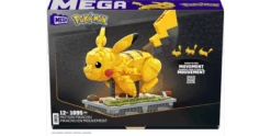 Mit diesem vollständig mechanisierten Bausatz, der einen Display-Ständer und einen steinigen Pfad enthält, der sich bei Aktivierung des Spielzeugs bewegt, lässt sich die bisher detaillierteste und aufwendigste Pikachu-Figur bauen. Das fertig aufgebaute Modell verfügt über eine drehbare Kurbel, die Beine, Füße und Schwanz in Bewegung setzt für ein wirklich authentisches Erlebnis.