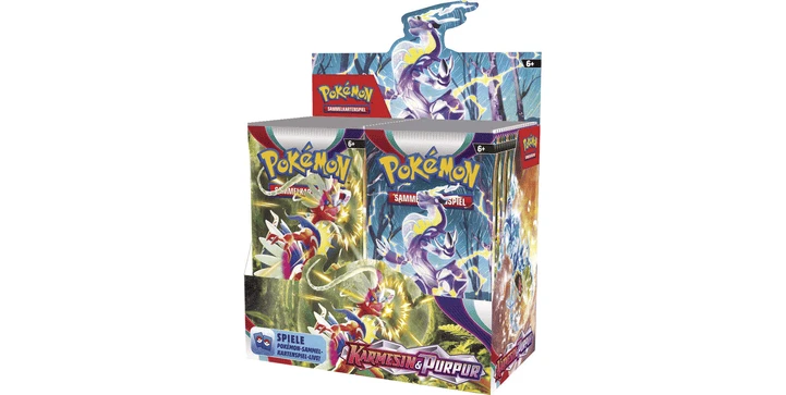 Begib dich auf eine Reise durch die Paldea-Region! Lerne die ersten Partner-Pokémon Felori, Krokel und Kwaks kennen und erforsche die Macht der Legendären Pokémon Koraidon und Miraidon als Pokémon-ex. Andere Pokémon-ex wie Arkani und Garados finden mit einem funkelnden neuen Look ihren Weg in den Kampf. Noch mehr Pokémon erscheinen als seltene Illustrationskarten mit fantastischen Abbildungen – entdecke sie alle in der Pokémon-Sammelkartenspiel-Erweiterung Karmesin & Purpur!