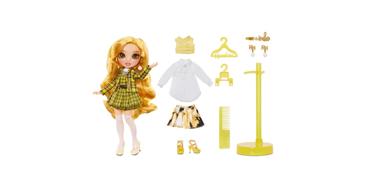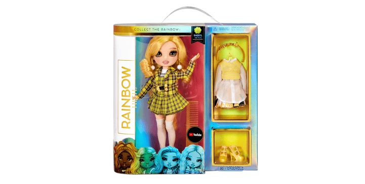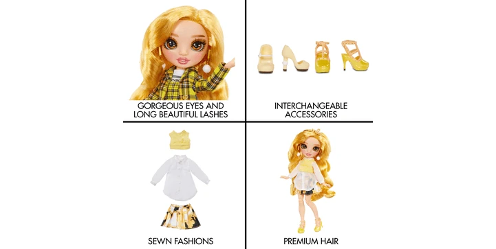 Sheryl Meyer hat ein einzigartiges Design und ist von Kopf bis Fuß in das wunderschöne Gelb der Ringelblume gekleidet. Sie hat wunderschöne detaillierte Merkmale in ihrer Mode, schöne Haare, lange Wimpern und Glasaugen. Sammle den Regenbogen von allen wunderschönen Rainbow High Modepuppen.