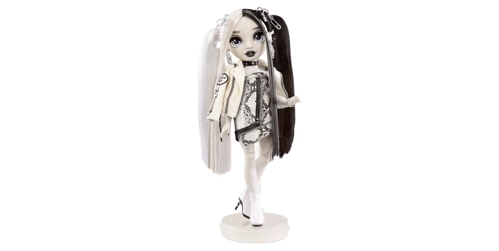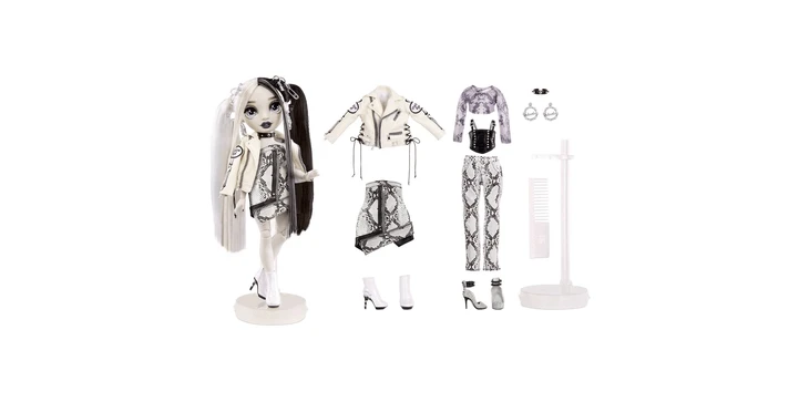 - WUNDERSCHÖNE EIGENSCHAFTEN: Heather Grayson hat ein einzigartiges Design und ist von Kopf bis Fuß in Schwarz-, Weiß- und Grautönen gekleidet. Sie hat wunderschöne, detailreiche Gesichtszüge, einen schönen, glatten, schwarz-weißen Pferdeschwanz, lange, echte Wimpern und Glasaugen. Sammle den Regenbogen von allen wunderschönen Shadow High Modepuppen.