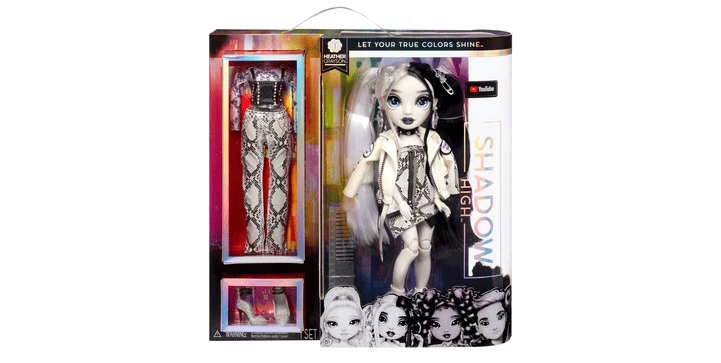- FAVORITEN-KOLLEKTION: Sammle alle 6 Shadow High Fashion Dolls: Natasha Zima, Heather Grayson, Ash Silverstone, Nicole Steel, Luna Madison, Shanelle Onyx. Besuche den Rainbow High Store, um die fantastischen Shadow High und Rainbow High Kollektionen zu kaufen. #LETYOURTRUECOLORSSHINE. Alle Modepuppen sind separat erhältlich.