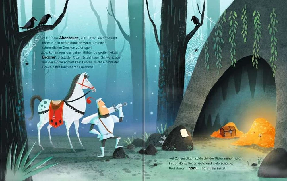 Ritter Furchtlos ist verzweifelt: Der schreckliche Drache ist im Urlaub. Wie soll Furchtlos nun das Ende seines Abenteuers erleben? Denn am Ende eines echten Ritterabenteuers steht nun mal der Kampf gegen einen feuerspeienden Drachen. Doch ein findiger Geschichten-Händler hat allerhand Alternativen im Angebot und Ritter Furchtlos lernt, dass es mehr als nur ein Ende für seine Geschichte geben kann. Lesebär SAMI nicht enthalten. Muss separat erworben werden.