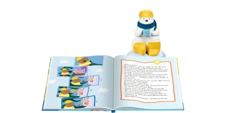 Mit SAMi – dein Lesebär tauchen Kinder ab 3 Jahren selbstständig in die Welt der Bilderbücher ein. Einfach ans Buch gesteckt, liest SAMi die Geschichte vor, während das Kind durch das Buch blättert. Dabei erkennt SAMi genau, auf welcher Seite sich das Kind befindet. Das Kind kann auf diese Weise frei im Buch vor- und zurückblättern und seine Lieblingsgeschichten beliebig oft anhören. So fördert SAMi die Selbstbeschäftigung und regt die Fantasie der Kinder an. SAMi kann verschiedene Bücher zu den unterschiedlichsten Themengebieten vorlesen: Neben wichtigen Themen aus dem Kinderalltag (z.B. Freundschaft, Streit), gibt es auch witzige Abenteuer und spannende Geschichten mit den Helden aus Filmen und Serien.
