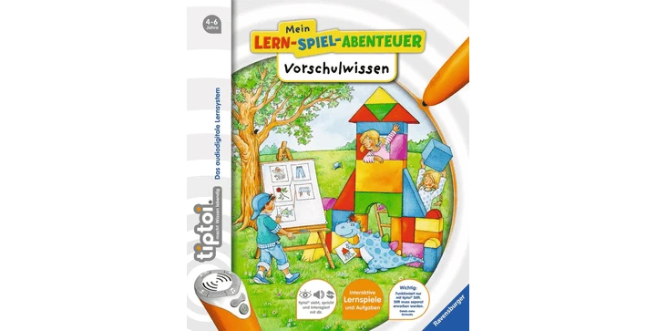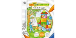 Hugo, der lustige Dino, sorgt für viel Spaß im Kindergarten: Im Sitzkreis reimen die Kinder mit ihm, beim Schattentheater erkennen sie Gegenstände an ihren Umrissen und im Sandkasten ordnen sie den Formen die passenden Sandförmchen zu. Beim Musizieren schlägt Hugo mit seinem Schwanz die Trommel und am Abend singen alle auf dem Laternenumzug. tiptoi® bereitet Vorschulkinder spielerisch auf die Schule vor.