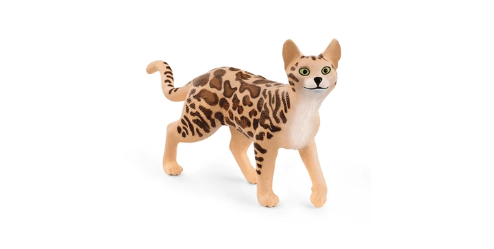 Die Bengal Katze von Schleich® FARM WORLD sieht aus wie ein kleiner Leopard. Aber nicht nur ihr Fell ist außergewöhnlich, sondern auch ihr Charakter. Die Bengalkatze ist sehr lebhaft und verbringt am liebsten den ganzen Tag damit, überall hinauf zu klettern oder zu springen. Mit ihrem neugierigen, wissensdurstigen Blick beobachtet sie alles, was um sie herum passiert. Sie gehört auch zu den wenigen Katzen, die gerne mit Wasser spielen.