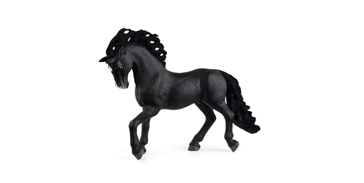 Der Pura Raza Española Hengst von Schleich® Horse Club ist ein stolzer Rappe mit einem elegant geschwungenen Hals, einer edlen Kopfform, einer langen, fließenden Mähne und einem üppigen Schweif. Pferde dieser Rasse werden oft für Andalusier gehalten – und umgekehrt genauso. Das verwundert kaum, denn sie sind eine eigenständige Zuchtlinie innerhalb der Andalusier. Um sie von anderen Pferden zu unterscheiden, werden die Zuchtbücher nach festen Regeln geführt.