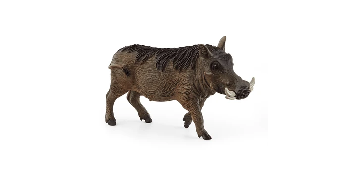 Das Warzenschwein von Schleich® WILD LIFE ist ein Säugetier, das in Afrika lebt und sich vor allem von Wurzeln, Knollen und Beeren ernährt. Unter den Augen und oberhalb der Nase hat es warzenförmige Auswüchse. Dies sind aber keine echten Warzen, sondern besonders dicke Haut. Sie schützt die Tiere im Kampf vor größeren Verletzungen. Um sich gegen Löwen, Hyänen, Leoparden und Wildhunde zu verteidigen, benutzen sie ihre Hauer.