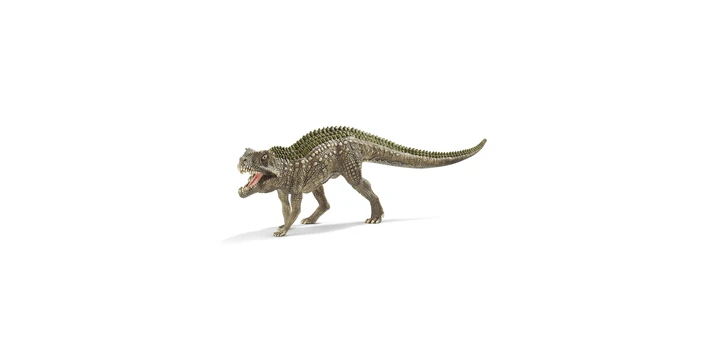Der Postosuchus war ein Archosaurier und damit ein enger Verwandter der heutigen Krokodile. Er hatte auffällige Hautverknöcherungen und eine lange, schmale Schnauze. Die meiste Zeit bewegte er sich auf vier Beinen vorwärts. Er stellte sich aber auch manchmal auf die Hinterbeine, um mit den Klauen Beute festzuhalten. Wenn der Postosuchus von Schleich® Dinosaurs seinen kräftigen, beweglichen Kiefer öffnet, sind die scharfen, dolchartigen Zähne zu sehen.