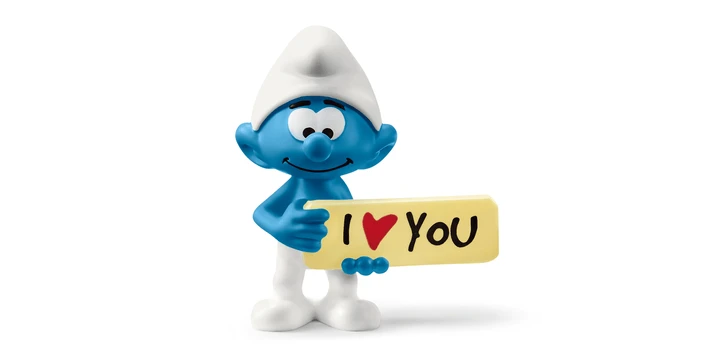 Der Schlumpf lächelt verträumt, als er dir sein Schild entgegenhält. Es zeigt dir auf besondere Weise wie sehr er dich mag.