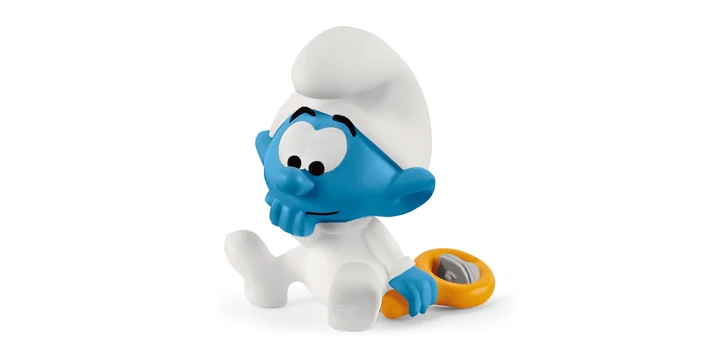 Wenn Baby Schlumpf sich freut, schwingt er kräftig die Rassel. Das macht Spaß!