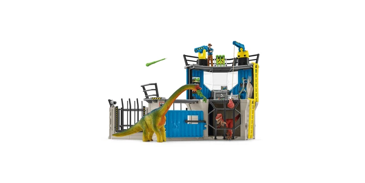 TEAM DINO, bestehend aus den 3 Colby Brüdern MAXX, LUIS und FLYNN machen sich auf den Weg um die Geheimnisse zu lüften! MAXX, der Anführer, hat auf der großen Dino-Forschungsstation von schleich® DINOSAURS jede Menge zu tun. Die Station bietet neben der Kommandozentrale eine Aussichtsplattform mit schwenkbarer Betäubungspfeil-Kanone sowie einen Kran. Im unteren Bereich befindet sich ein Quarantäne-Raum für frisch eingefangene Dinos. Hier können sofort die ersten Untersuchungen gemacht werden und dann die Dinos durch die Falltür ins Gehege gelassen werden. Oh nein! Der Velociraptor ist ausgebrochen! Kann MAXX ihn mit seiner Stabwaffe wieder einfangen? Das Spielset bietet jede Menge Zubehör und 2 Dinos in cooler Bemalung. Entdecke die gesamte schleich® DINOSAURS Welt und die spannenden Abenteuer der Colby Brüder unter www.schleich-dinosaurs.com/p>