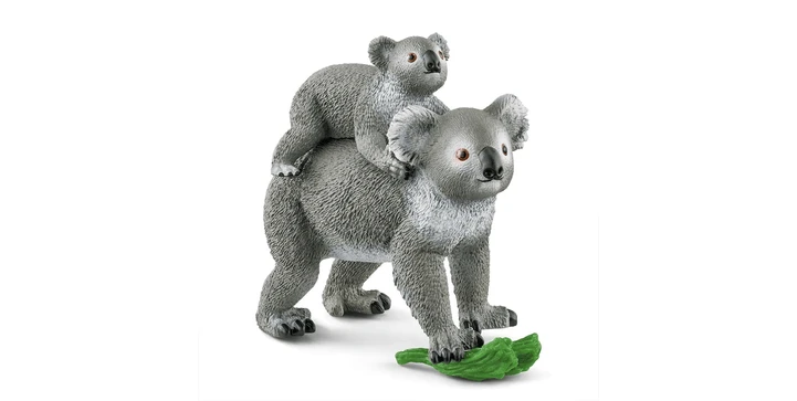 Mit der Koala-Mutter und dem Koala-Baby steigt die Niedlichkeits-Skala von schleich® WILD LIFE auf den Maximalwert. Bei den Koala-Figuren handelt es sich um authentische Nachbildungen ihrer lebenden Verwandten aus den australischen Eukalyptuswäldern. Wie jede liebevolle Mama hat auch die Koala-Mutter vorsorglich ein paar grüne Blätter eingesteckt, falls ihr Junges vor Hunger mal schlechte Laune bekommen sollte. Das kleine, putzige Duo ist das perfekte Koala-Spielzeug für Kinder ab 3 Jahren.