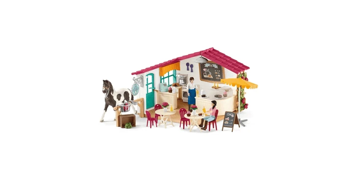 Mmmmh, lecker! Wenn es im Reiter-Café wieder nach frischem Apfelkuchen duftet, läuft allen schon das Wasser im Mund zusammen. Im „Cups and Saddles“ gibt es einfach die besten Nachspeisen – auf Deutsch bedeutet der Name übrigens: Tassen und Sättel. Was könnte es an einem Herbsttag Schöneres geben, als mit Freunden ein Stück ofenfrischen Kuchen und ein dampfendes Heißgetränk zu genießen, während eure Pferde an der Tränke ihre Köpfe zusammenstecken. Aber pass gut auf – deine tierische Begleitung könnte einen Moment der Unachtsamkeit ausnutzen, um an deinem Kuchen zu knabbern!