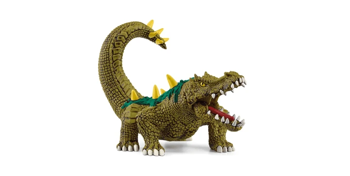 Achtung – im Sumpf lauert das Sumpfmonster und mit dem ist nicht gut Kirschen essen, das sieht man gleich. Sein Maul ist ziemlich groß. Was es wohl als Nächstes zwischen die langen Reißzähne bekommt? Das könnte böse enden! Aber auch mit dem stachelbesetzen Schwanz setzt sich das Sumpfmonster gut zur Wehr. Ein Hieb damit und dem Gegner schwinden die Sinne. Besonders gemein: Das Sumpfmonster kann sich gut verstecken und ist perfekt getarnt mit seinen grünen Schuppen. Auf dem Rückenpanzer liegen sogar noch Lianen, so ist es erst recht schwer zu entdecken. Wer nicht aufpasst, den überrascht es im Sumpf. Dann kommt es wie aus dem Nichts aus der dunklen Brühe hervorgeschossen und schnappt zu. Also Vorsicht!