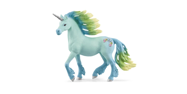 „In der bayala® Spielewelt ist er der Experte für Süßes: Der der Zuckerwatte Einhorn Hengst der Schleich® bayala® Welt. Bereits die Mähne dieses Pferdes ist süß, bunt und am liebsten geflochten. Gemeinsam mit der Marshmallow Einhorn Stute und dem Bonbon Einhorn Fohlen gehört er zu den niedlichsten Pferden der bayala® Welt. Hast du schon einmal sein Fell angefasst? Es ist weich wie Wolken. Aber bei großer Hitze auch etwas klebrig. Also lieber Hände waschen, wenn du ihn zu viel gestriegelt hast.