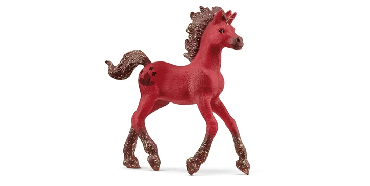 Wie ein roter funkelnder Granat schwebt das Sammeleinhorn Granat über die Wiesen BAYALAS®. Seine üppige Glitzermähne flattert im Wind, weil es lustig umherspringt. Auf der Flanke hat es ein passendes Kristalltattoo. Und das Tollste: Es ist ein Sammeleinhorn. Gemeinsam mit den anderen Kristalleinhörnern lebt es in der schönsten Herde in ganz BAYALA®.