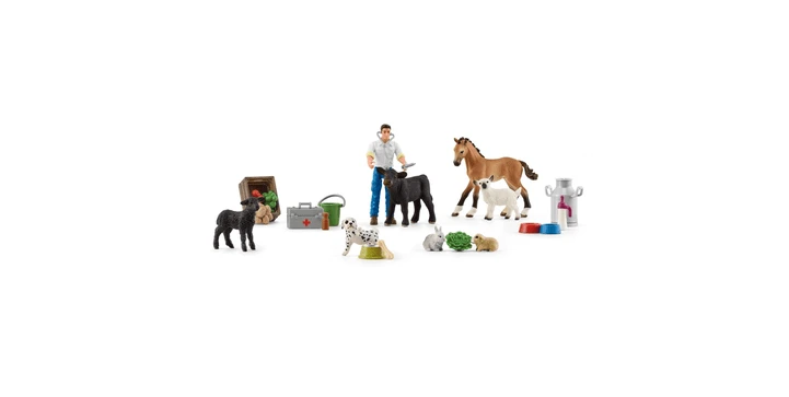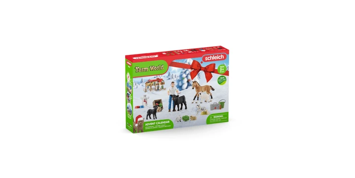 Ein schleich® Adventskalender eröffnet den Kleinen die wundersame und spannende Welt der Spielzeuge von schleich®. Jeder Tag hält eine neue besondere Überraschung bereit, auf die sich die Kinder schon freuen können! Hinter jeder nummerierten Tür versteckt sich eine von neun schleich® FARM WORLD Spielfiguren oder eins von 15 Zubehörteilen. Zu den Farmtier-Figuren zählen ein Kalb, ein Ziegenbaby, ein Kätzchen, ein Kaninchen, ein Dalmatinerwelpe, ein Meerschweinchen, ein Pferd, ein Lamm und ein Tierarzt.