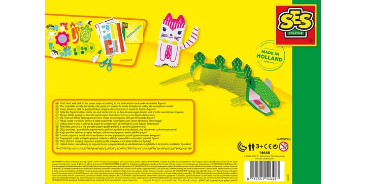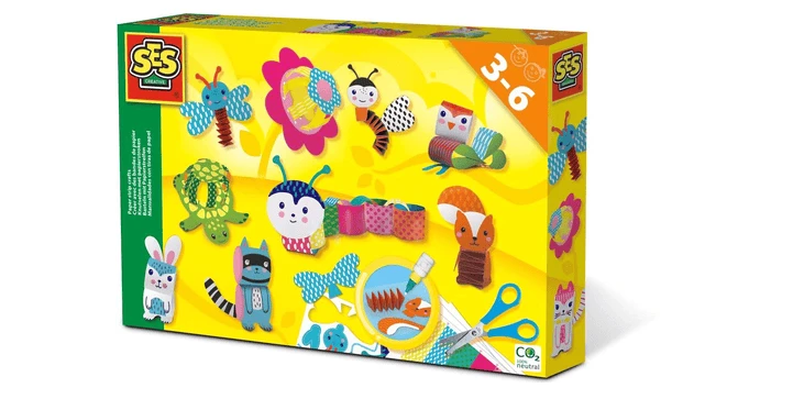 Wer hat nicht als Kind Papierstreifen gewebt und eine Papierkette gebastelt? SES Creative hat diesem zeitlosen Basteltrick mit dem Papierstreifen-Bastelset einen stylischen neuen Look verpasst. Lies die Anweisungen gut durch und falte die Papierstreifen genau. Das Set enthält genug Material, um 11 Figuren zu gestalten. Es gibt einfache Formen zum Ausschneiden und andere Formen, wie die Tiergesichter, die ganz einfach aus dem Papier gedrückt werden können. Enthält eine Schere für rechtshändige Kinder Funktionen: