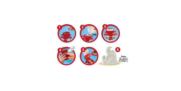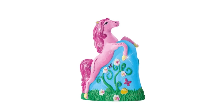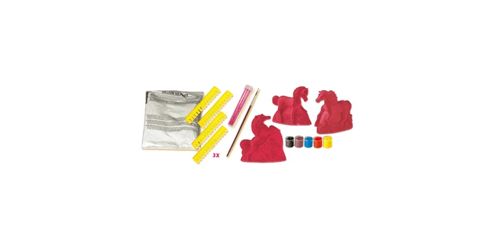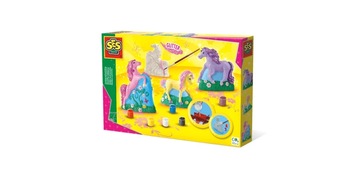 Bastle deine eigenen Pferde! Mit diesem kreativen Set von SES machst du deine eigenen Pferde aus Gips. Gieße den Gips in verschiedene 3D-Formen: ein Fohlen, ein stehendes Pferd und ein sich aufbäumendes Pferd. Lass die Modelle trocknen und bemale deine Pferde mit den Farben im Set. Das macht riesigen Spaß mit tollen Ergebnissen!