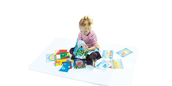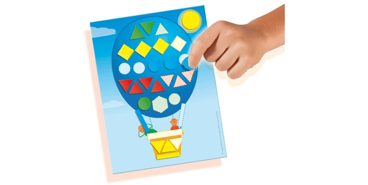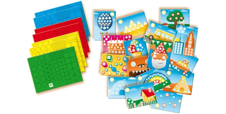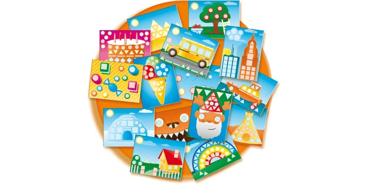 Erkennst Du die verschiedenen Formen und Farben? Welche Form braucht man für die Räder des Busses, was brauche ich um eine Pyramide zu bauen und welche Form haben die Fenster des Wolkenkratzers? Finde die richtige Form und die richtige Farbe und klebe sie auf die Vorlagen. Mit diesem Set lernen die Kleinen spielerisch den Umgang mit Formen und Farben.