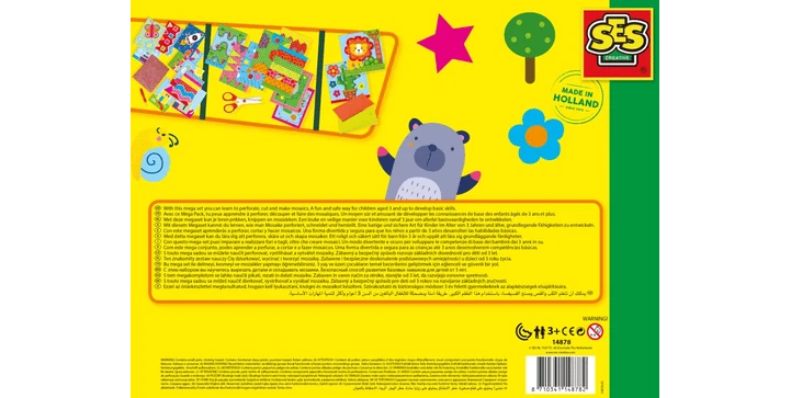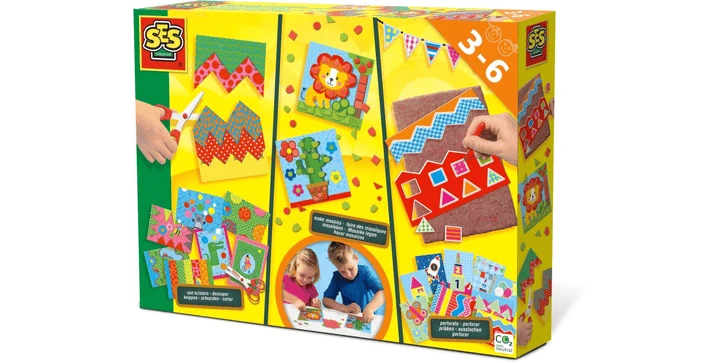 Es gibt so viel zu lernen für die Kleinen! Wieso nicht einfach spielerisch Neues lernen? Mit diesem Set von SES lernen kleine Kinder alle möglichen Grundfertigkeiten. Lerne zu schneiden, auszustechen und Mosaike zu legen. Es macht Spaß und ist sicher! Mit zahlreichen bedruckten Blättern. So macht Lernen Spaß!