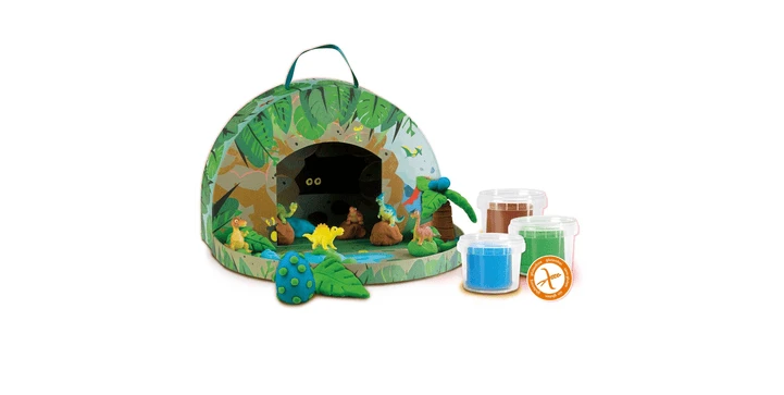 Dinofans aufgepasst! Mit diesem Set von SES Creative lassen sich spielendleicht fantastische Landschaften für die riesigen Giganten erschaffen. Dank dieses umfangreichen Themenkoffers ist im Nu eine eigene Dinosaurierwelt kreiert: Einfach aus der Knete Pflanzen, Felsbrocken, Dino-Spuren und Co. formen. So entsteht im Handumdrehen eine Landschaft nach Lust und Laune, in der alle starken Dinosaurier Platz finden. Das Beste: Die eigene Fantasie-Welt kann immer wieder neugestaltet werden – durch den praktischen Koffer sogar überall. Bereit für ein abenteuerliches Dino-Paradies?