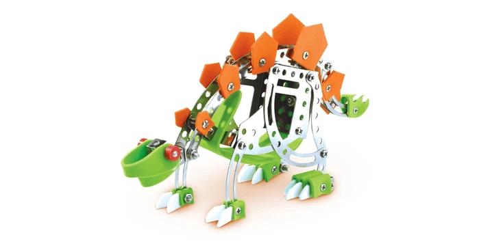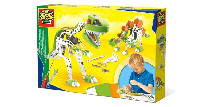 Dinosaurier-Fans aufgepasst! Mit diesem Metall-Konstruktionsset von SES kannst du die coolsten Dinosaurier basteln. Schraube die Teile aus Schaumstoff und Metall mit den Bolzen und Muttern zusammen. Wählst du T-Rex oder Stegosaurus? Stundenlanger Bastelspaß!