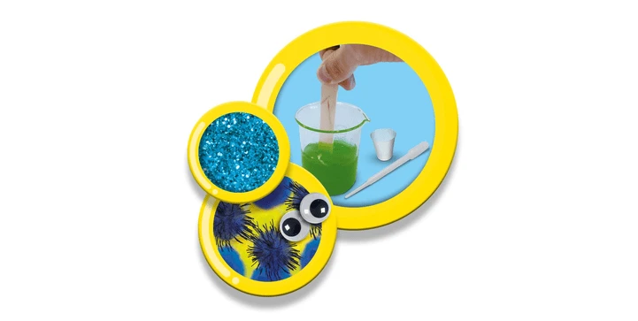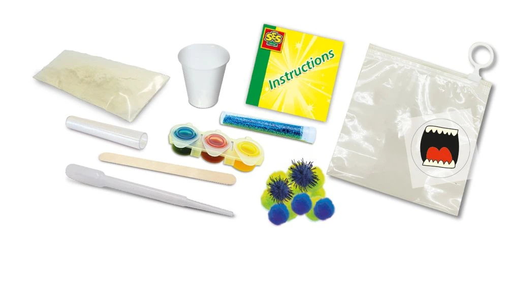 Monster-Alarm im Schleim-Labor! Dieses Set von SES Creative sorgt für gruseligen Schleim-Spaß! Hier wird die glibberige Masse im coolen Monster-Look hergestellt – und zwar ganz nach eigenen Vorstellungen. Einfach die gewünschte Farbe auswählen und mit den entsprechenden Zutaten vermischen. Natürlich lässt sich der Schleim auch noch mit weiteren, speziellen Extras wie farbigen Pompons aufpimpen. So erhält die Glibber-Masse ihr individuelles Aussehen. Zum Schluss noch die Kulleraugen aufkleben und fertig ist das Schleim-Monster. Nun kann der Schleim geknetet, gezogen und geformt werden was das Zeug hält. Bis zum nächsten Spielen lässt sich die Masse ganz einfach in dem kleinen Täschchen mit Reisverschluss verstauen, ist geschützt und kann so problemlos überall mithingenommen werden. Eine genaue Anleitung erklärt natürlich die einzelnen Schritte – so kann gar nichts mehr schiefgehen. Bereit für schleimigen Monsterspaß? Funktionen: