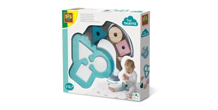 Form zu Form und sortieren wie die Großen! Mit diesem Set von SES Creative stärken kleine Weltentdecker spielend ihren Sinn für Formen, Farben und Oberflächenstrukturen. Es gilt die verschiedenen Greif-Elemente den zugehörigen Formlöchern zuzuweisen und durchzustecken. Außerdem ist es spannend, die verschiedenen Materialien, Farben und Texturen zu erkunden. Rund oder eckig, naturfarben oder bunt? Mit den großen Elementen auf der Sicherheitsschnur können sich Kinder intensiv beschäftigen und beruhigen. Das Formspielzeug entwickelt sensorische und motorische Fähigkeiten, fördert die Auge-Hand-Koordination und stärkt die Konzentration. Der perfekte Zeitvertreib für daheim und unterwegs! Funktionen: