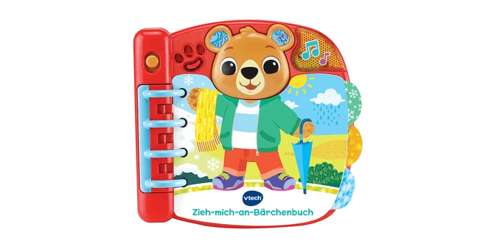 - Liebevoll gestaltetes Bärchenbuch mit 6 interaktiven Seiten, das dem Kind beibringt, sich passend zum Wetter anzuziehen