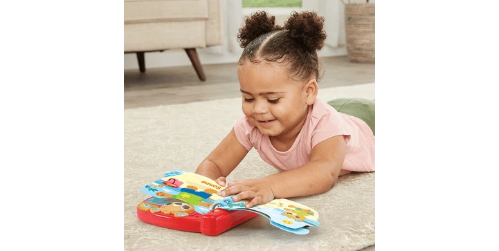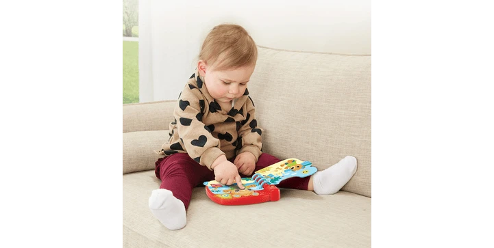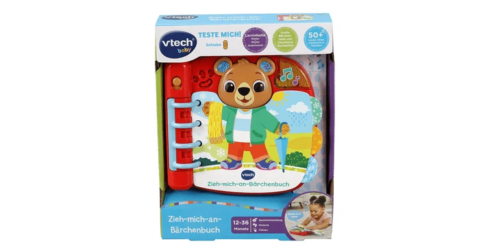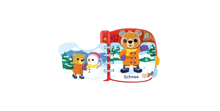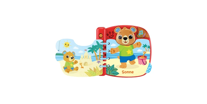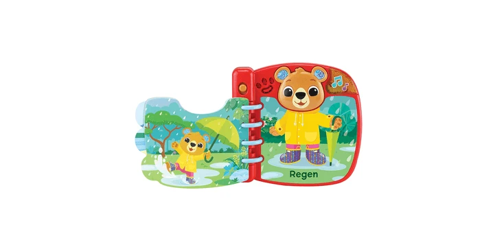 - 6 interaktive Seiten: durch deren Umblättern zieht man das Bärchen je nach abgebildeter Wetterlage anders an, während passende Sätze und Geräusche zu Wetter und Kleidung abgespielt werden