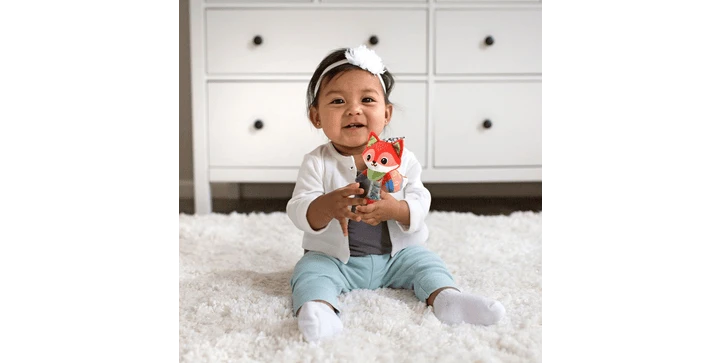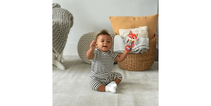 Rasseln, spielen und staunen! Die Fuchs-Babyrassel mit vielen weichen Elementen ist leicht und perfekt für Babyhände sowie die Förderung der motorischen Fähigkeiten geeignet. Die Kleinen haben zudem großen Spaß, wenn sie die bunten Perlen beobachten, wie sie die Rassel im Zickzack hinunterrutschen.