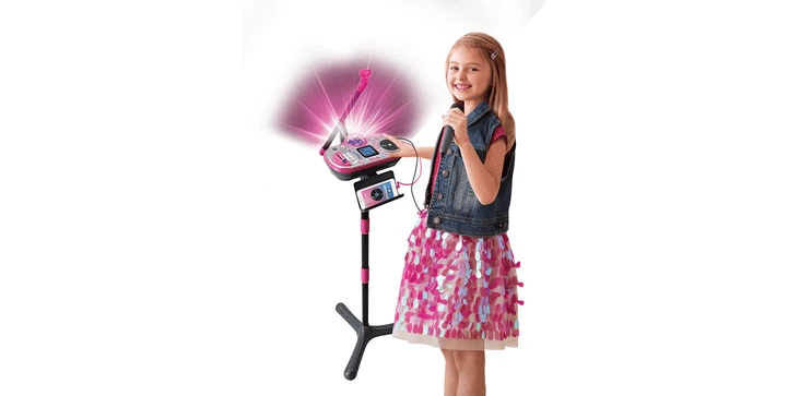 - 12 vorinstallierte Lieder (6 zum Mitsingen und 6 für die eigenen DJ Mixe) mit coolen Animationen auf dem Display