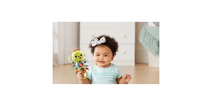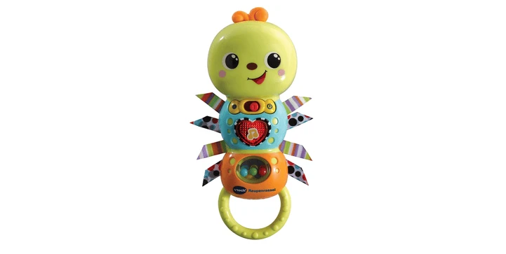 Die Raupenrassel schütteln oder die leuchtende Taste drücken, um Lieder, Melodien, Geräusche und Sätze zu hören.