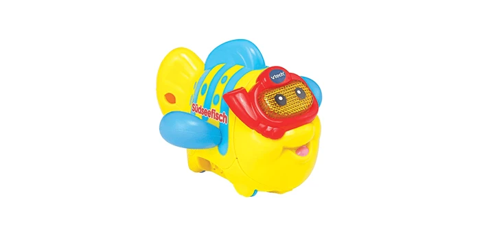 - Spricht themenbezogene Sätze, singt und macht lustige Geräusche
